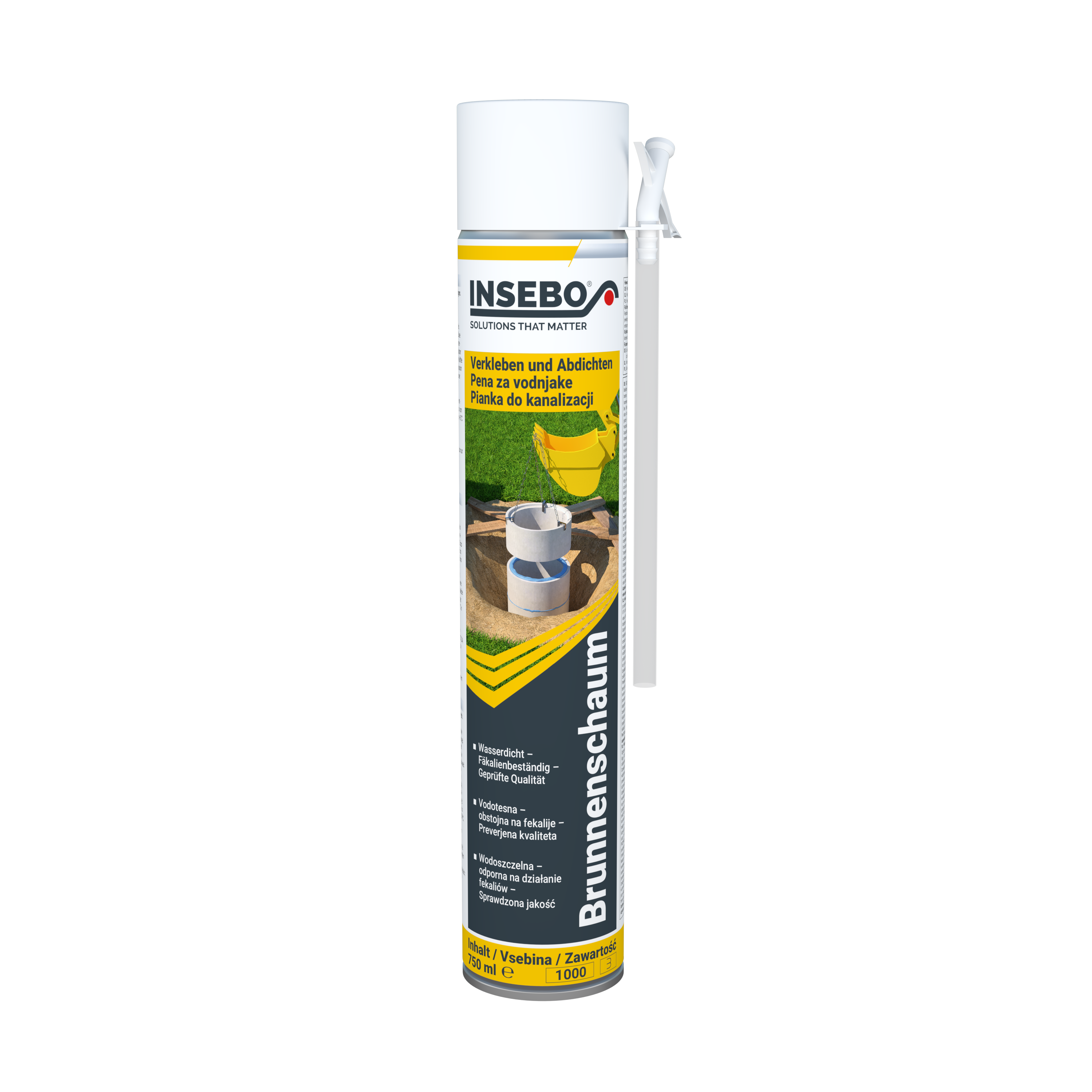 wasserdicht, beständig gegen kommunale Abwässer, ungiftig im ausgehärteten Zustand, alterungsbeständig, frostbeständig, Schaumausbeute ca. 36 Liter
