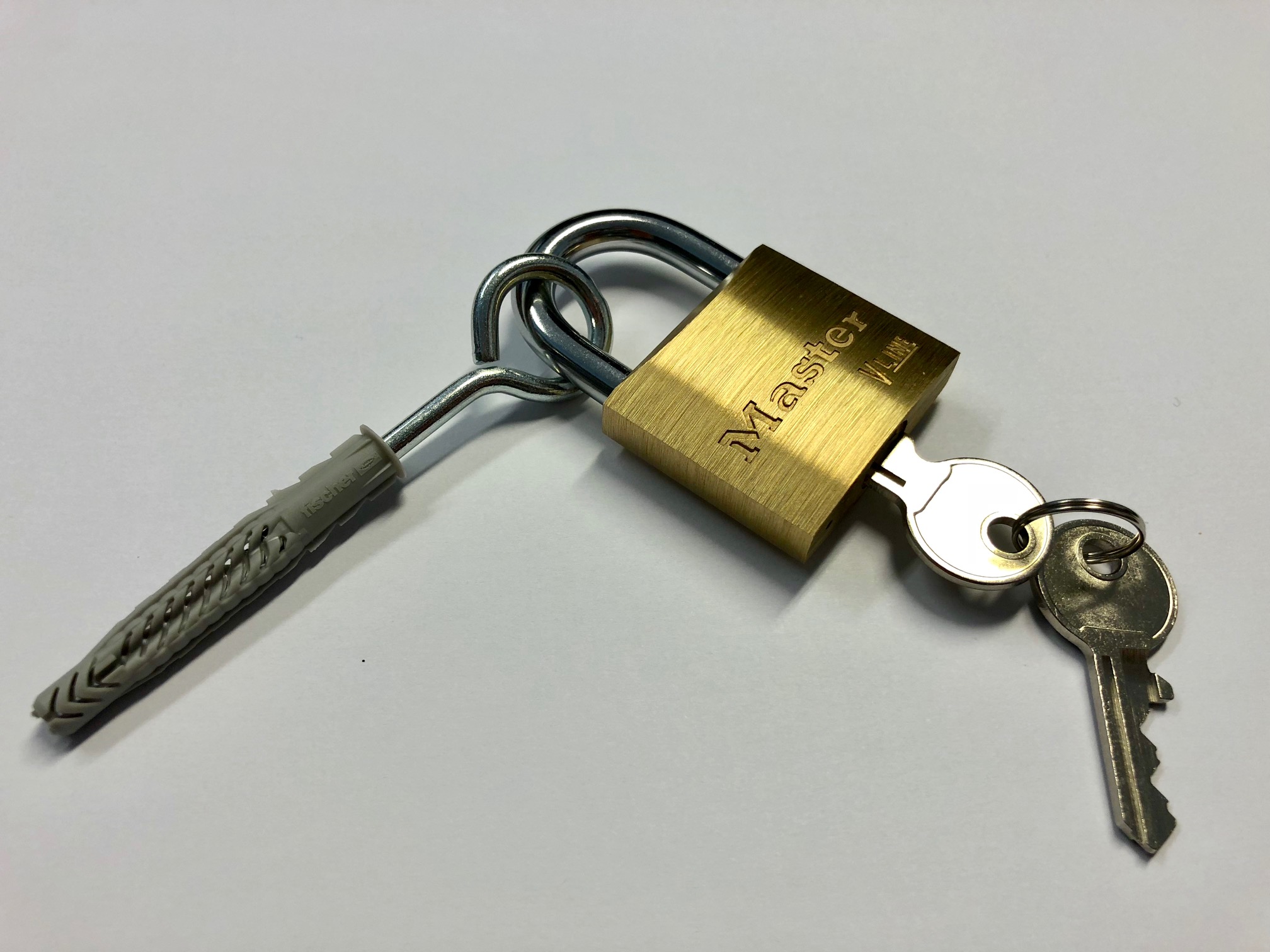 Wand-Set bestehend aus: "Wandring + Dübel + Vorhängeschloss + 2 Schlüssel"